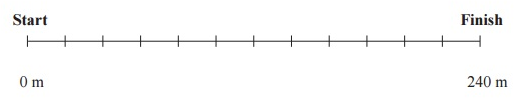 The diagram below shows a race that is 240 m long. Zola runs 5⁄12 of the race.How many metres does she run?Enter your answer:Answer: m