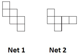 Which of the following statements is correct?Choose your answer:ANeither are nets of cubesBNet 1 is the net of a cubeCNet 1 and 2 are both nets of cubesDNone of the answers are correctENet 2 is the net of a cube